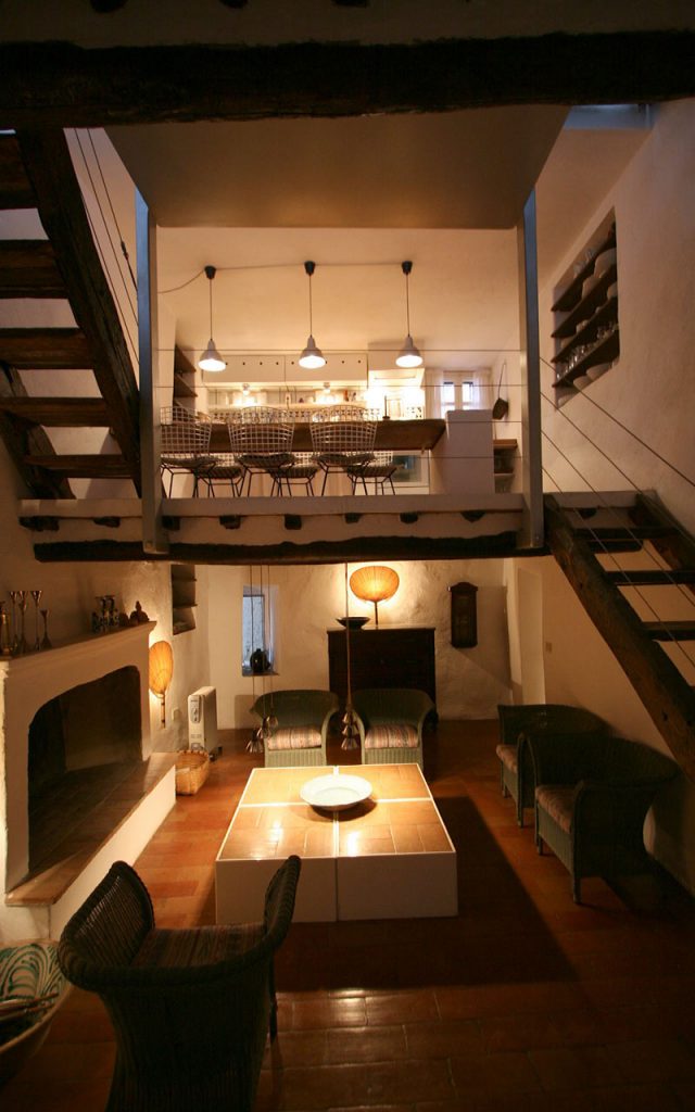Die Casa Honigmann besteht aus einem turmartigen Haupthaus mit offenen Galerien und einer Dachterrasse. Im EG befindet sich der Wohnbereich mit einem großem Kamin, darüber die offene Küche mit großem Esstisch. Von der anschließenden Schlafgalerie erreicht man die Dachterrasse mit Esstisch und Liegestühlen.